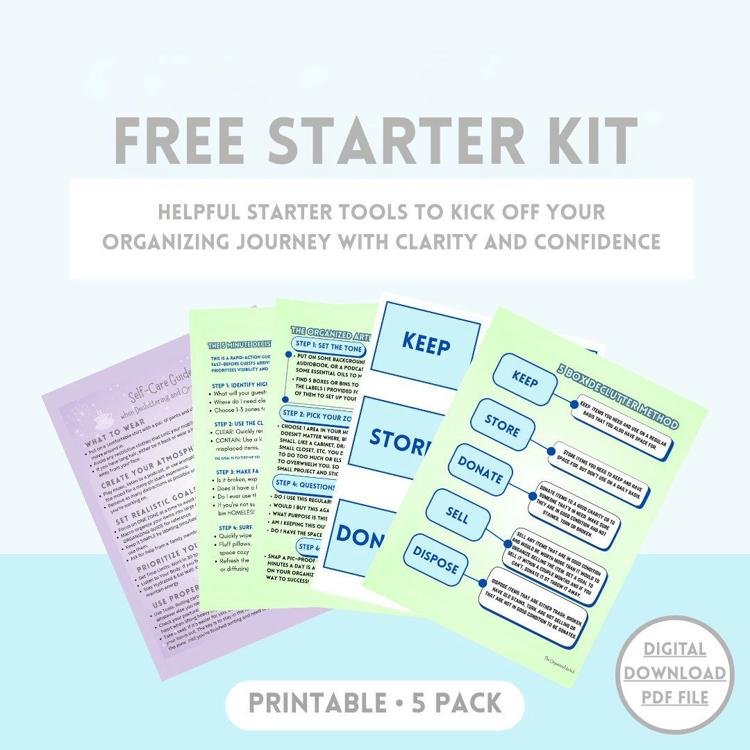 Kickstart your decluttering journey with this Free Starter Kit! In it includes 3 Guides to get you going, More Quick Tips & Sorting Bin Labels to help you take action right away.